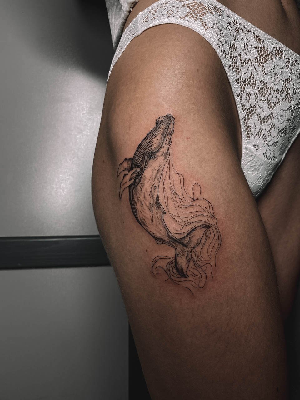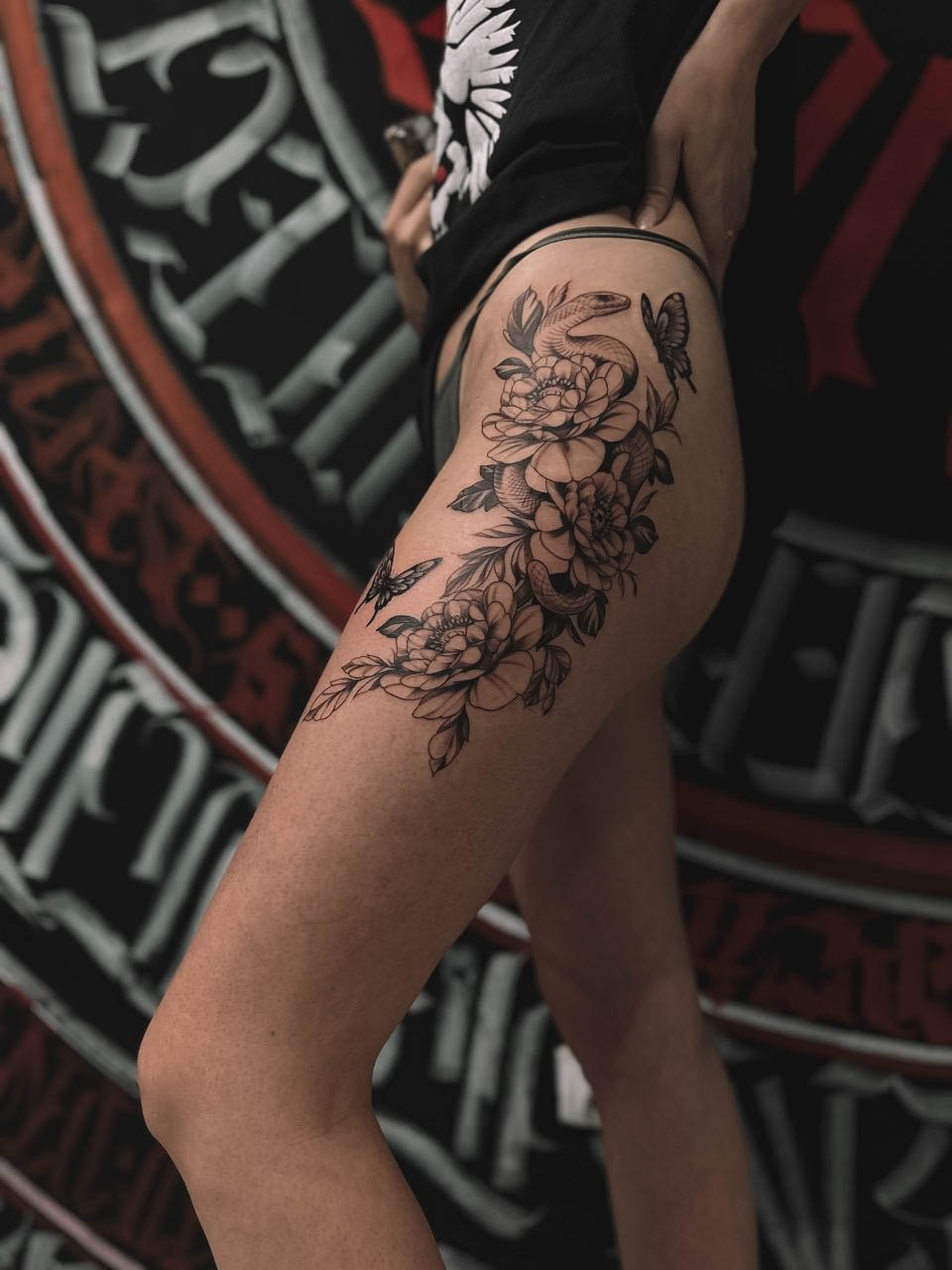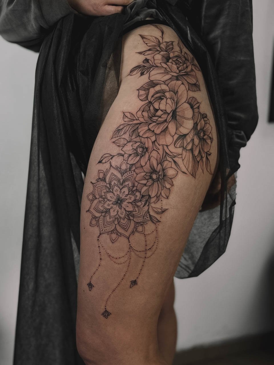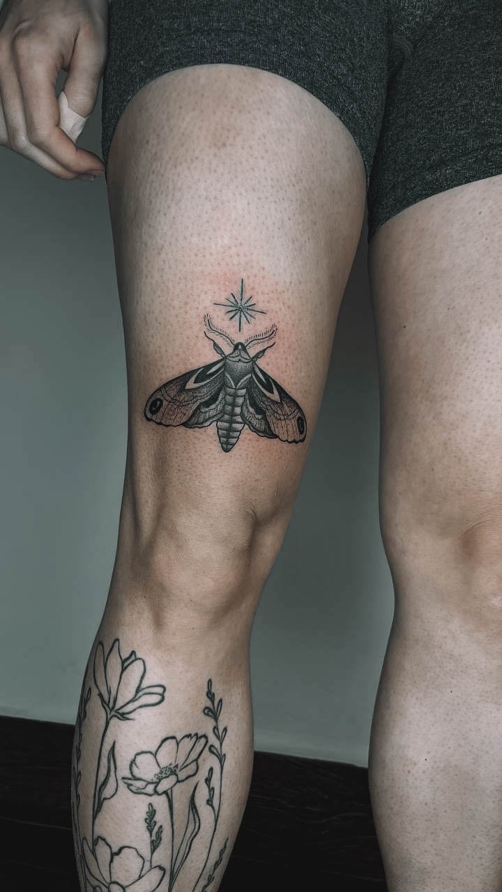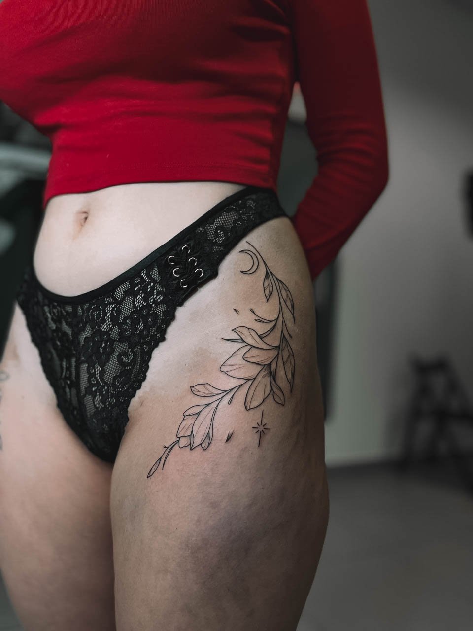- Stehno: Horní část nohy poskytuje dostatek prostoru pro větší a detailnější návrhy. Výhodou je, že tetování na stehně lze snadno skrýt pod oblečením, což ocení ti, kteří chtějí mít svou ozdobu diskrétní.