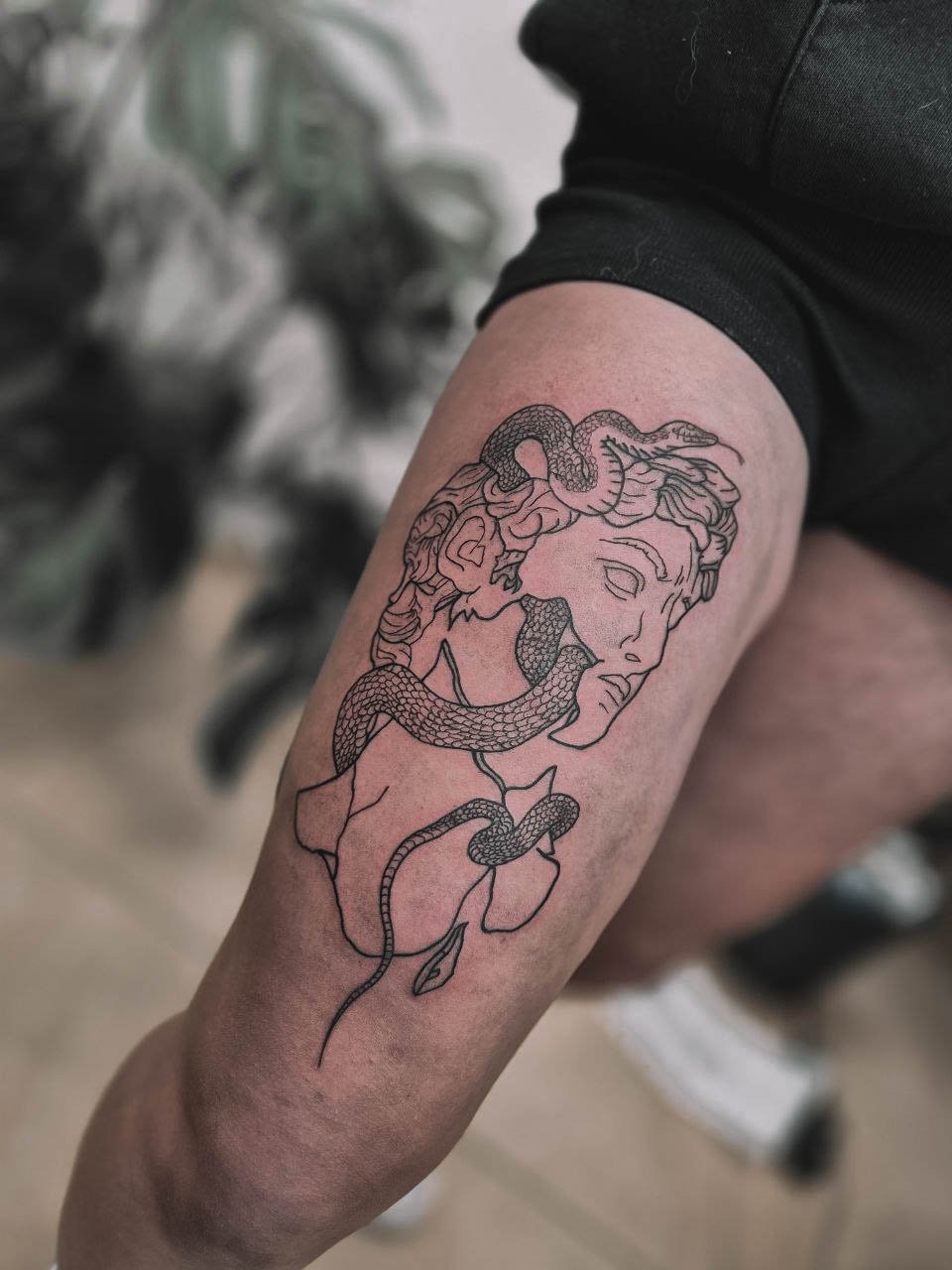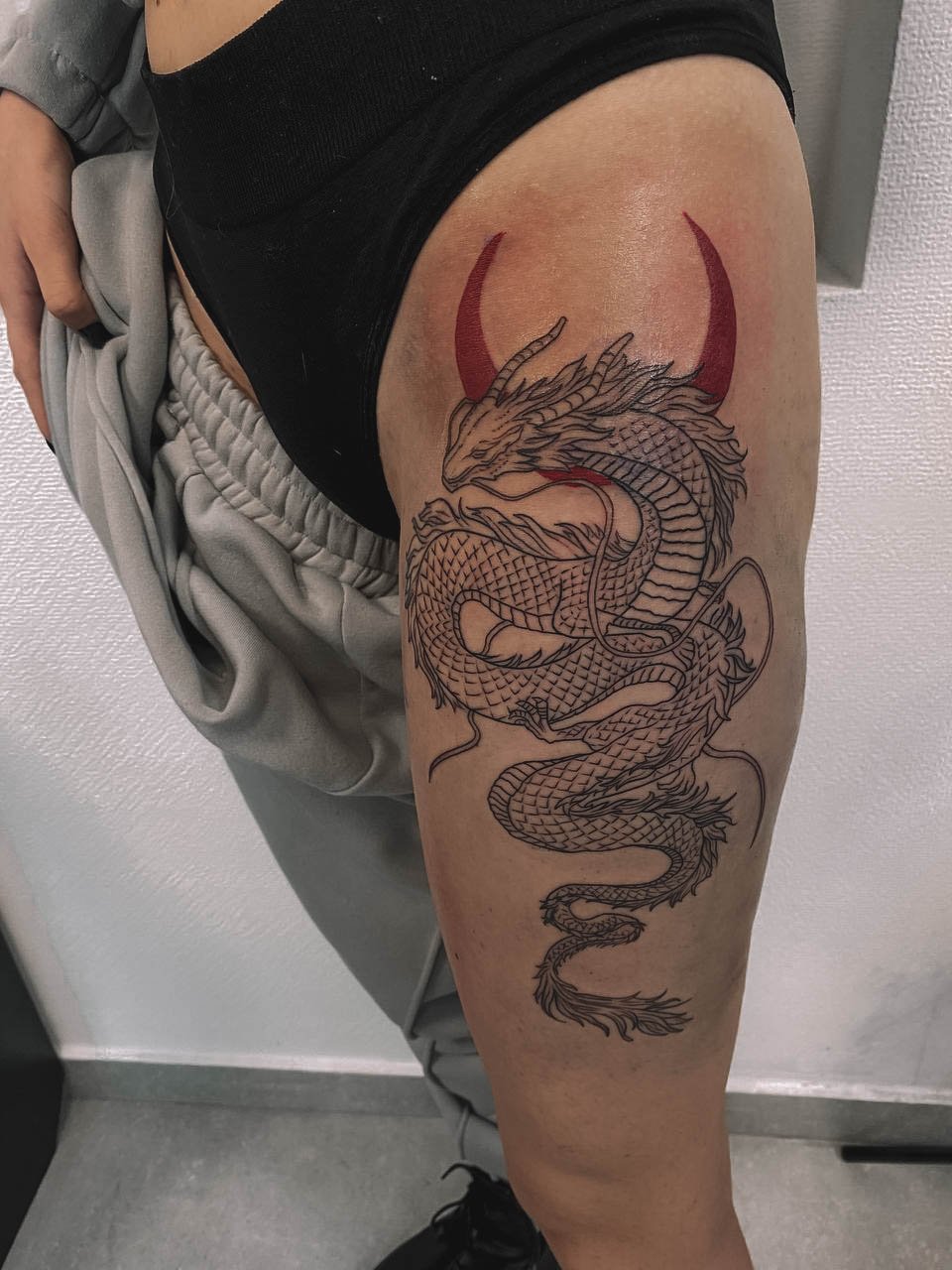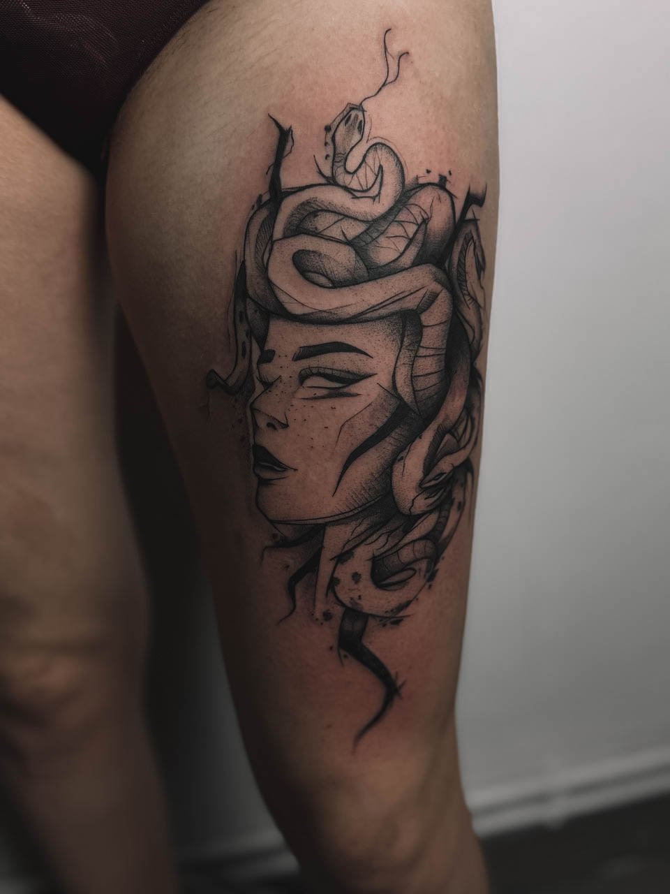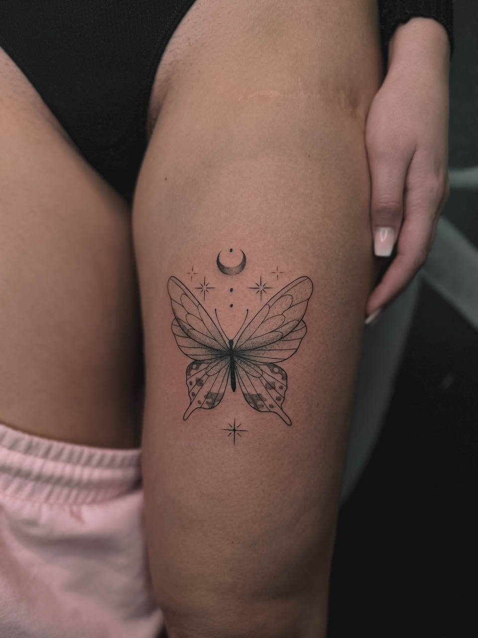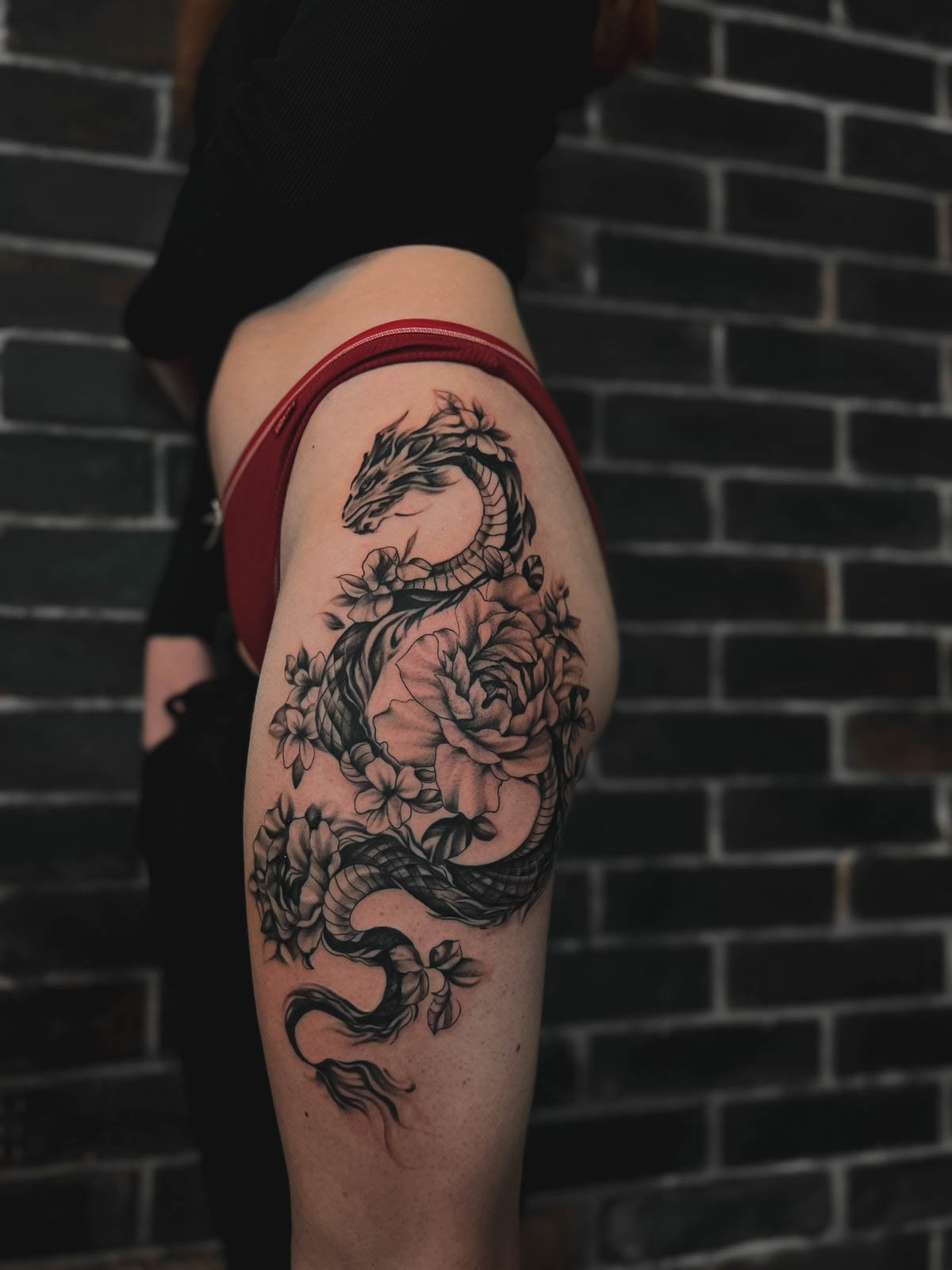 - Stehno: Horní část nohy poskytuje dostatek prostoru pro větší a detailnější návrhy. Výhodou je, že tetování na stehně lze snadno skrýt pod oblečením, což ocení ti, kteří chtějí mít svou ozdobu diskrétní.
