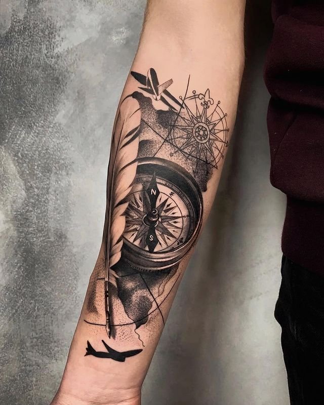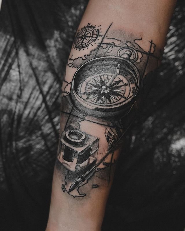 - Kompas na předloktí má hluboký význam. Mnoho lidí věří, že jim takové znamení pomůže najít sami sebe a svou cestu v tomto světě. Mnoho mladých lidí plní kompas na znamení, že jsou na křižovatce.