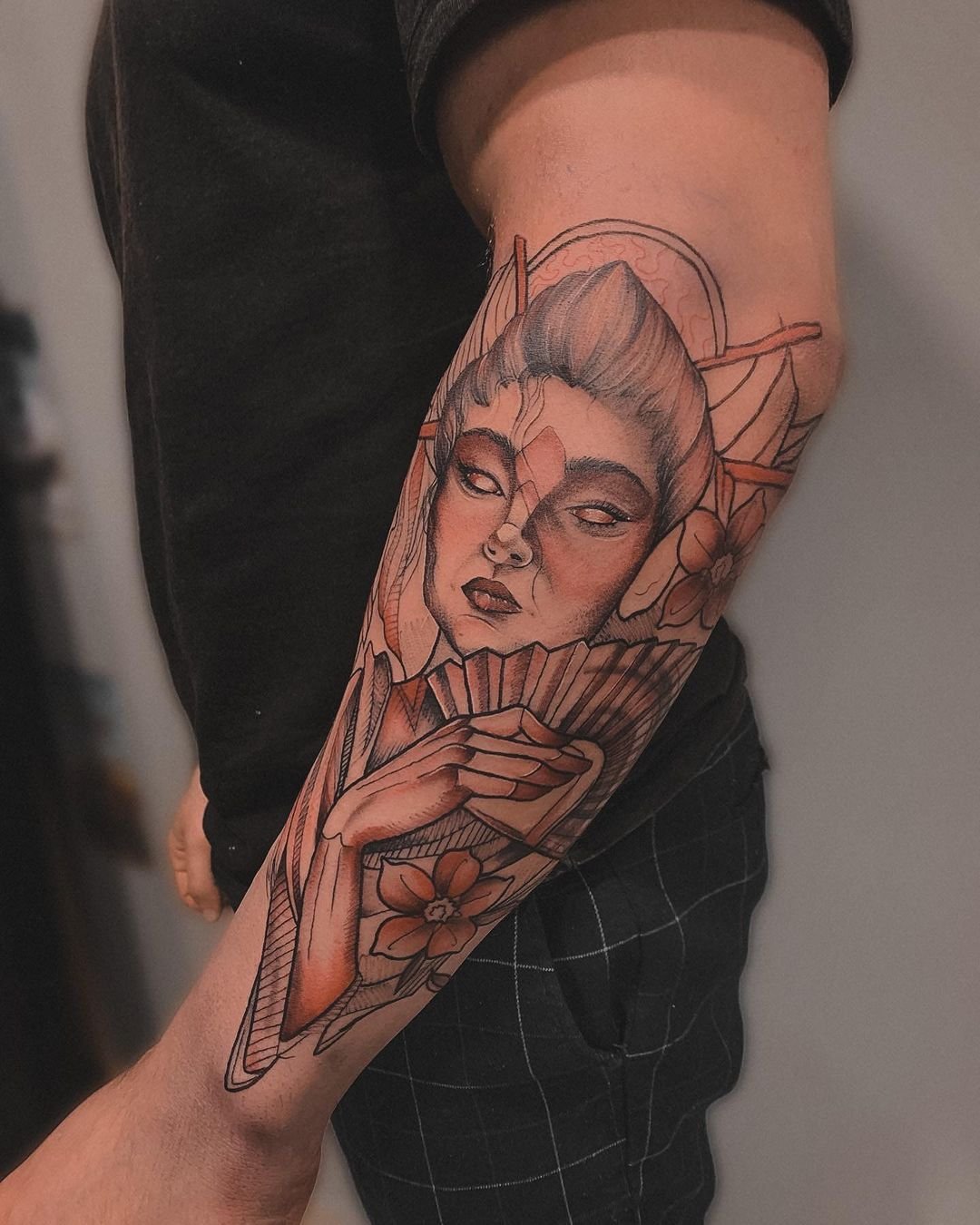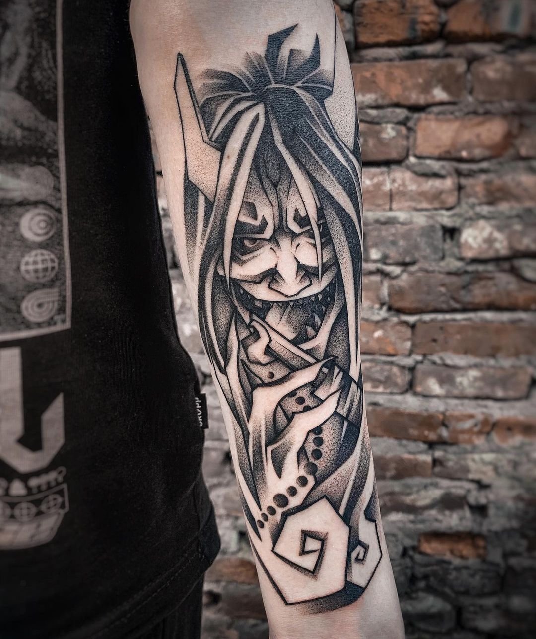 Nápady se liší tématem, velikostí obrázku, barevnou výplní. Můžete si udělat malé "symbolové" tetování nebo obrovský obrázek s několika postavami. Toto by mohlo být pokračováním tématu ramen. A můžete si udělat doplňkové tetování na obě předloktí.